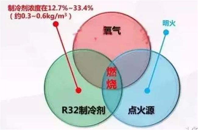 R32制冷劑可燃,燃燒條件:需要濃度達到一定的值,遇到明火。R32空調的出現,無疑對空調安裝工提出了更規范的操作。
