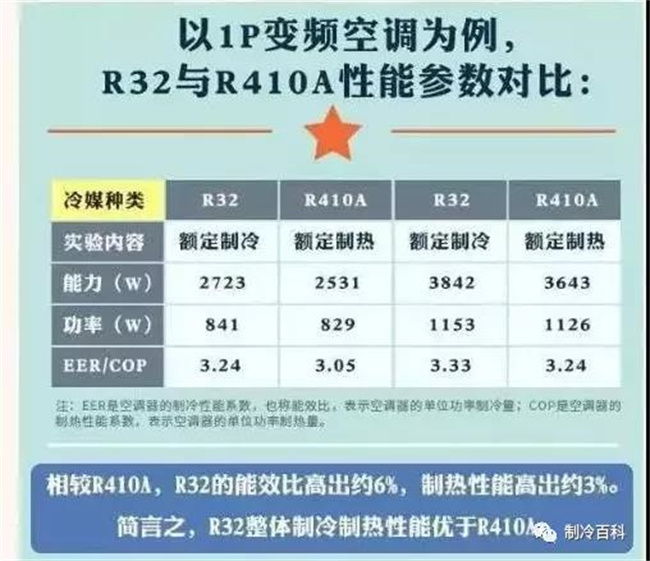 R32制冷劑屬于氫氟烴類,化學名稱為二氟甲烷,R32制冷劑的臭氧層破壞潛能值(ODP)跟R410A一樣都為0,而R32的全球變暖系數值(GWP)僅為675,遠遠低于R410A。