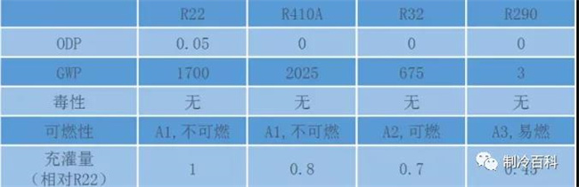 作為R22制冷劑的取代品,R410A的臭氧層破壞潛能值(ODP)為0,不會破壞臭氧層了。但是R410A的全球變暖系數值(GWP)為2025,很多人說R410A是環保制冷劑,其實不是!R410A雖然不破壞臭氧層,但是會產生的溫室氣體,所產生的溫室氣體效應甚至還部分超過了R22。